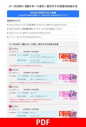 コース2000 / 2輪スポーツ走行 / 走行クラス改定のお知らせ