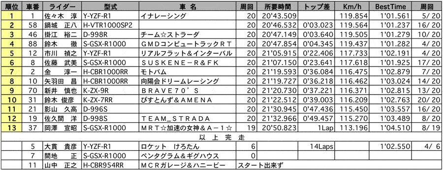 | チャレンジJSB/SB・S-NK 正式決勝結果表 Weather :晴 Track :ドライ[▲TOP] |