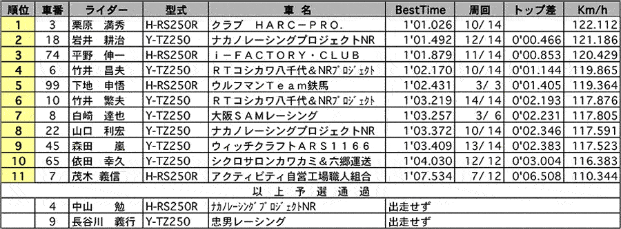 | GP250 公式予選結果表 Weather :曇り Track :ドライ[▲TOP] |