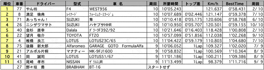 | Formula/Super7 CUP 正式決勝結果表 Weather :晴 Track :ドライ[▲TOP] |