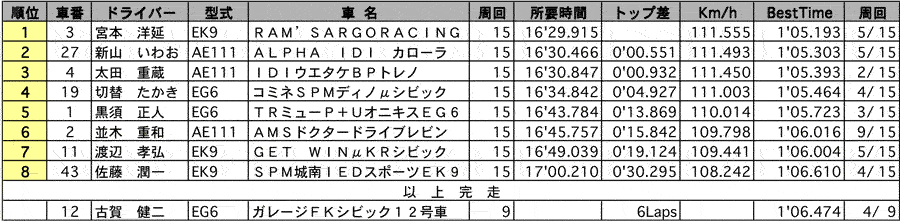 | P1600 正式決勝結果表 Weather :晴 Track :ドライ[▲TOP] |