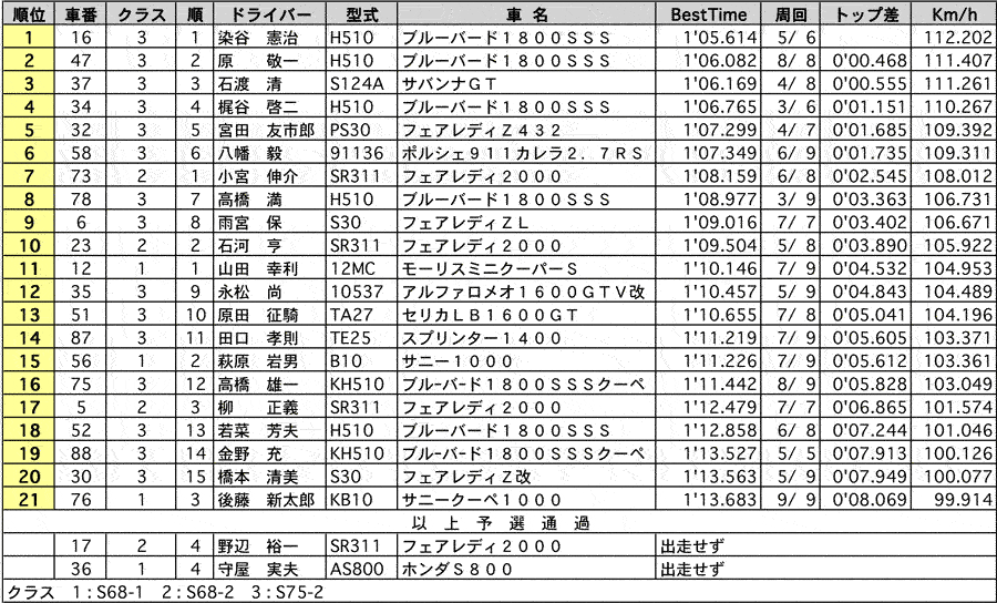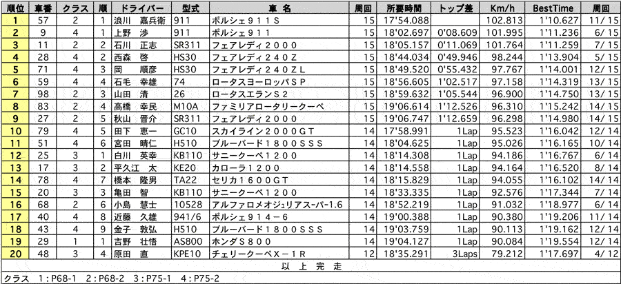 | S68/75 正式決勝結果表 Weather :晴 Track :ドライ[▲TOP] |