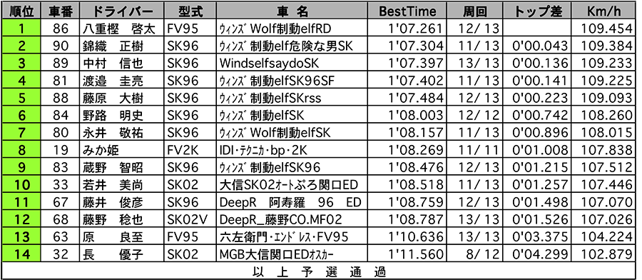 | FSケイ(予選) Weather :雨 Track :ウェット[▲TOP] |