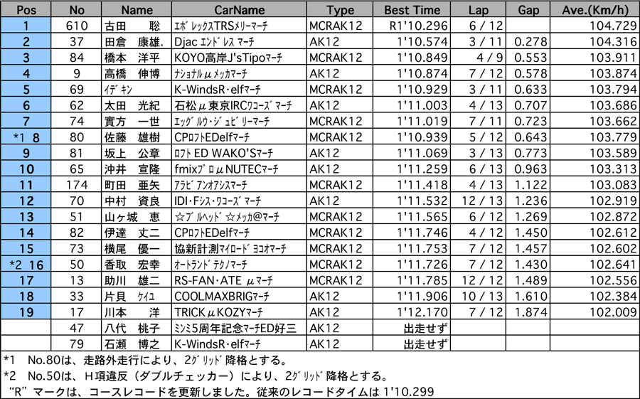 | ジュニア7(2回目走行結果) Weather :晴れ Track :ドライ[▲TOP] |