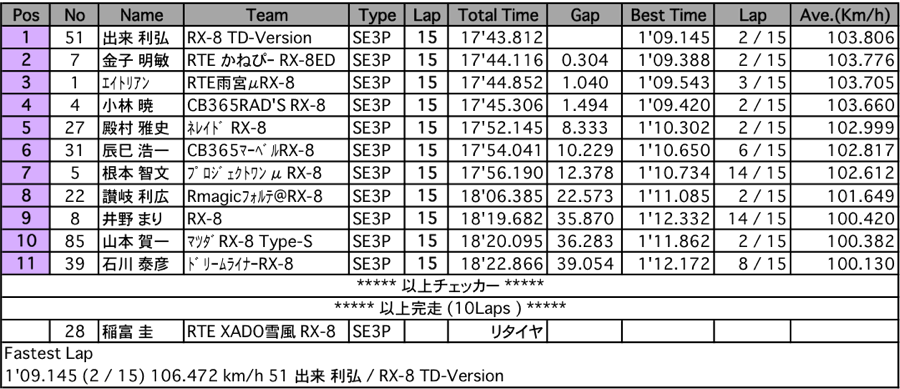 | RX-8 <マスターズクラス>(決勝) Weather :晴れ Track :ドライ[▲TOP] |