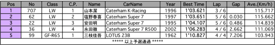 | GF-T/S CL-T/S(予選) Weather :曇り Track :ドライ[▲TOP] |