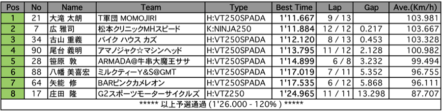 | TAKUMI(予選) Weather :曇り Track :ドライ[▲TOP] |