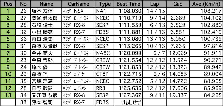 | ロードスターNR-A(決勝) Weather :小雨のち曇り Track :ドライ[▲TOP] |