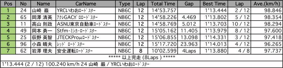 | ロードスターNR-A(決勝) Weather :曇り Track :ドライ[▲TOP] |