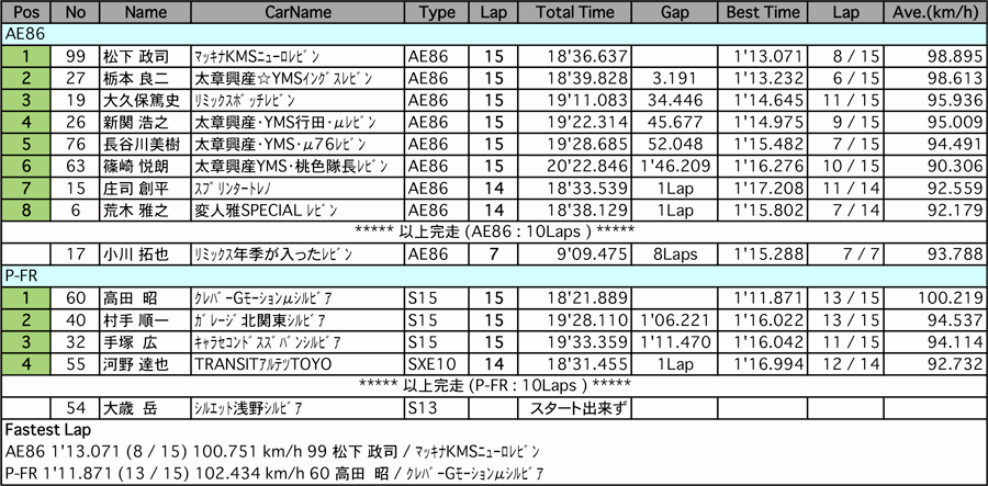 | P-FR/AE86(予選) Weather :曇り Track :ドライ[▲TOP] |
