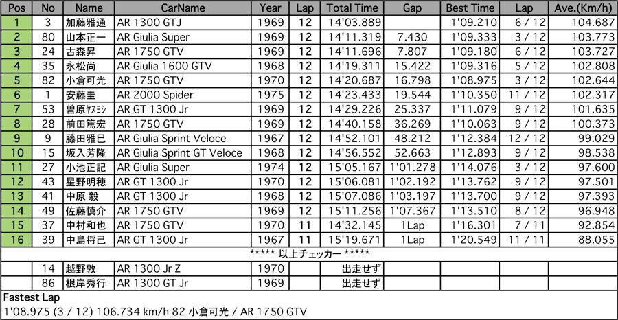 | AR-CUP(決勝) Weather :晴れ Track :ドライ[▲TOP] |