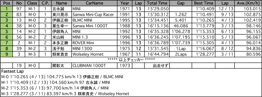 | MINI-CUP(決勝) Weather :晴れ Track :ドライ[▲TOP] |
