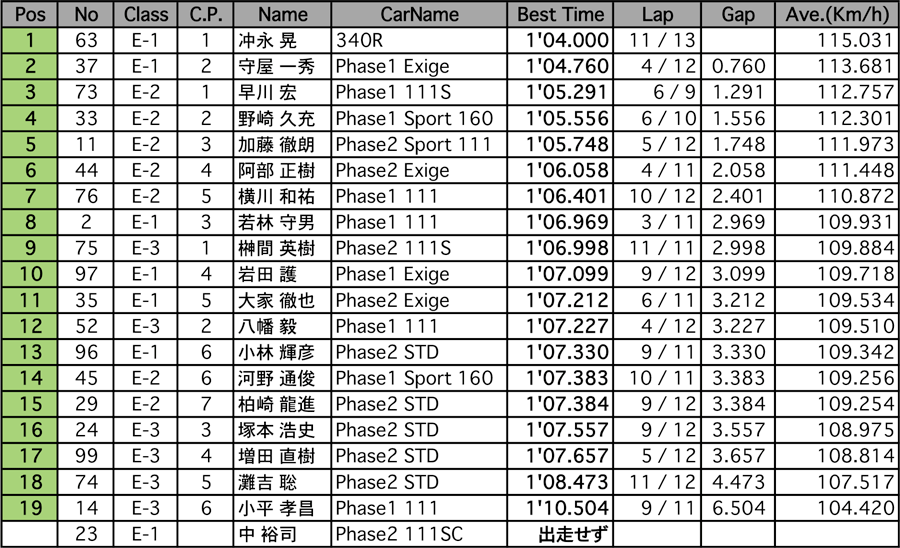 | エリーゼ111CUP(決勝) Weather :晴れ Track :ドライ[▲TOP] |