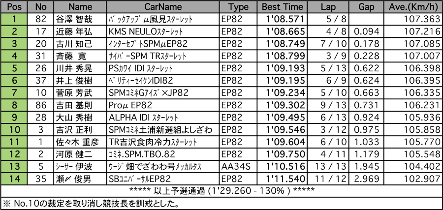 | スーパーカート(予選) Weather :曇り Track :ドライ[▲TOP] |