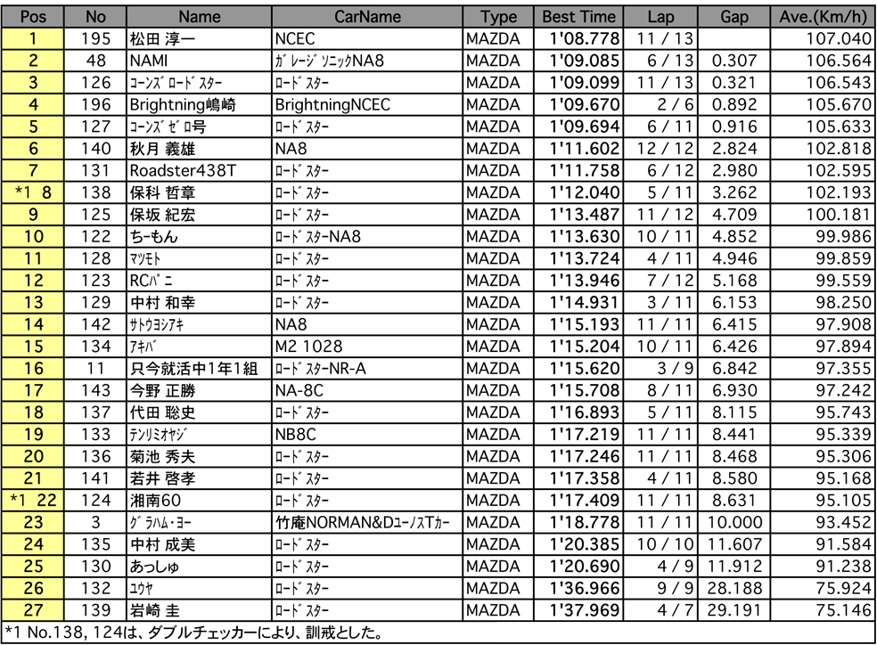 | Super CUP(予選) Weather :曇り Track :ドライ[▲TOP] |