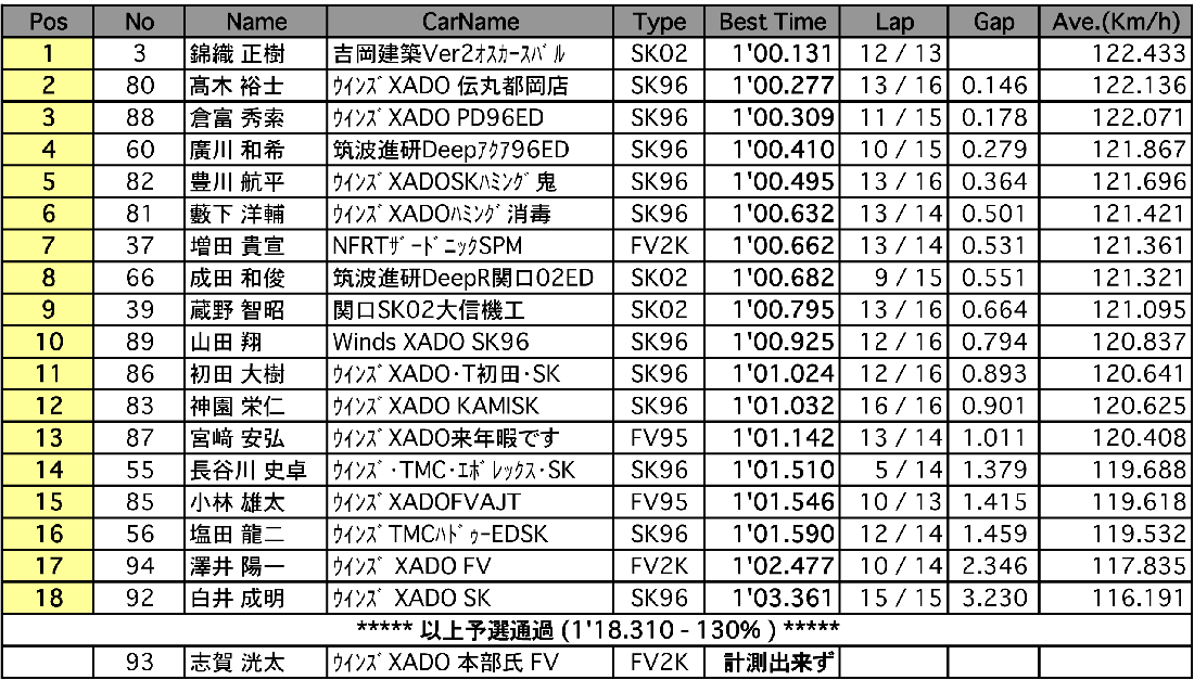 | JAF筑波スーパーFJ地方選手権シリーズ 第6戦 スーパーFJ(予選) Weather :晴れ Track :ドライ[▲TOP] |