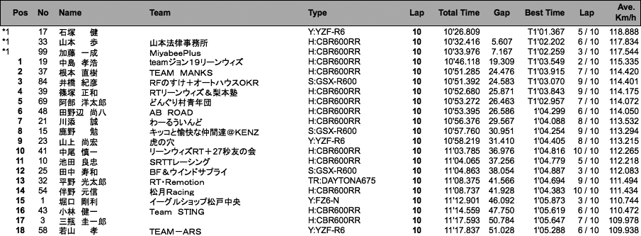 NS2/CBR250R CUP(決勝) Weather :曇り Track :ドライ[▲TOP]