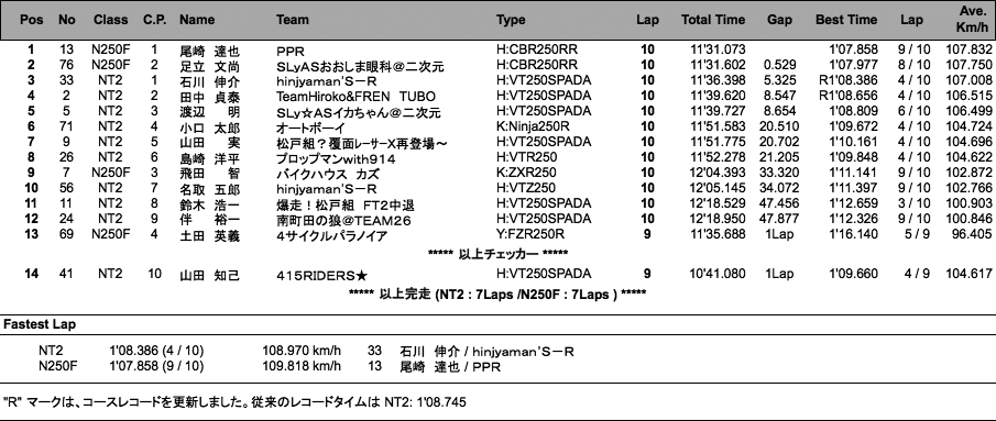 NT2/N250F(決勝) Weather :晴れ Track :ドライ[▲TOP]