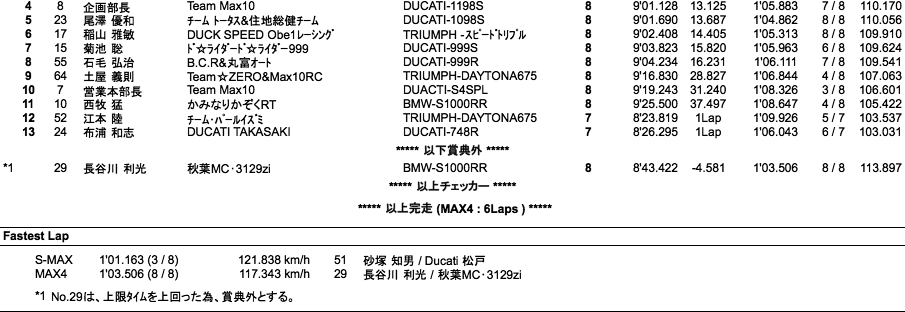| SuperMAX/MAX4(決勝) Weather :晴れ Track :ドライ[▲TOP] |