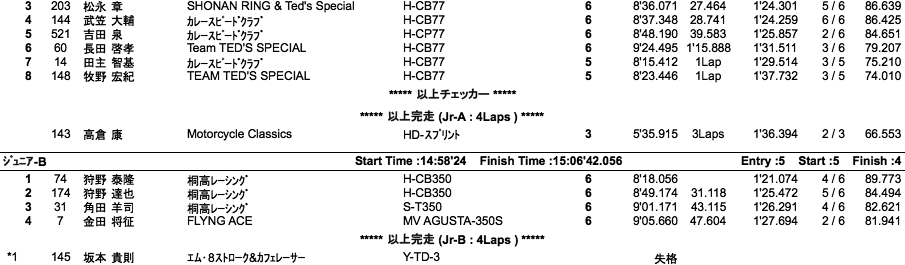 | MAX10- I A/Jr/シャフターズ/ II A/ II B/MAX15(決勝) Weather :晴れ Track :ドライ[▲TOP] |