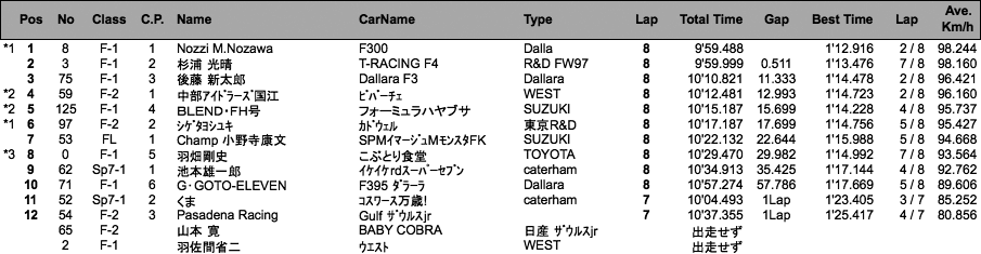 | 930/9/9S/NR(決勝) Weather :雨 Track :ウェット[▲TOP] |