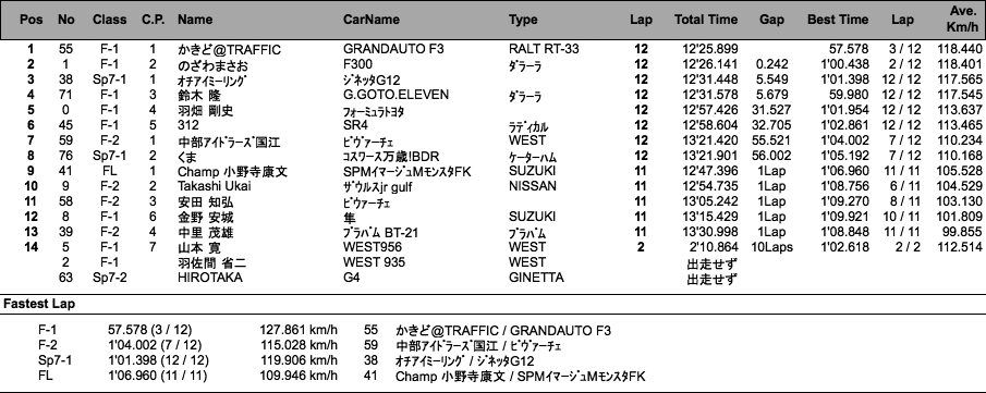 | F/7/FL(クラス別決勝) Weather :晴れ Track :ドライ[▲TOP] |