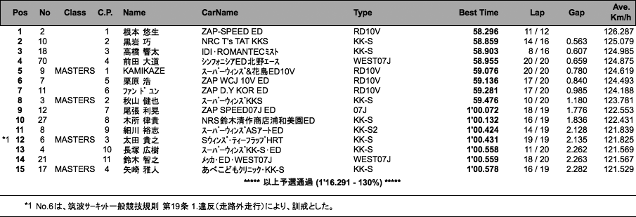 | JAF筑波スーパーFJ選手権シリーズ第2戦 スーパーFJ(予選) Weather :晴れ Track :ドライ[▲TOP] |