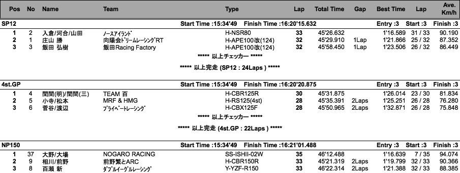 | LOC=ULW/LW-A・B/JR-A・B/PRE1950(決勝) Weather :曇り Track :ドライ[▲TOP] |