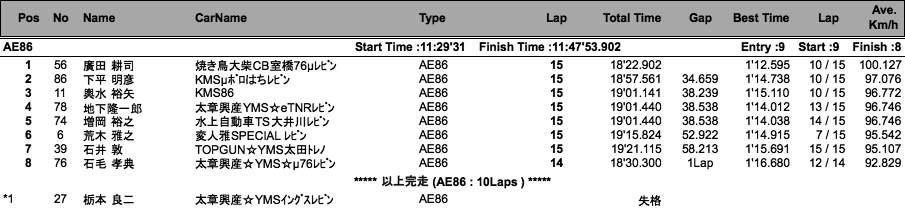 | AE86/P-FR(決勝) Weather :雨 Track :ウェット[▲TOP] |