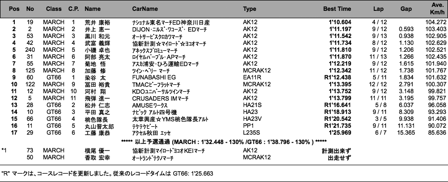 | MARCH RACE/GT66(予選) Weather :晴れ Track :ドライ[▲TOP] |