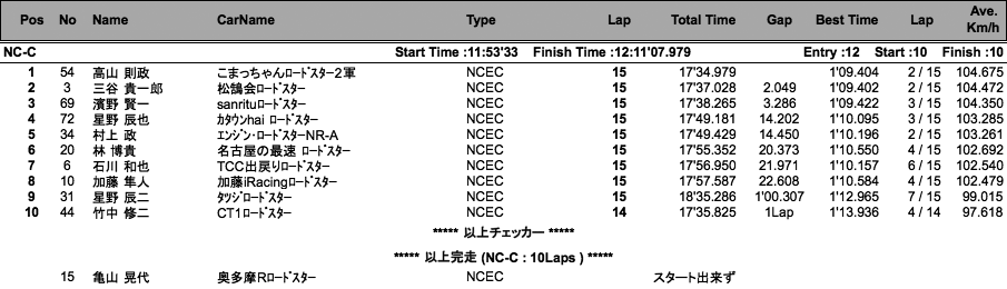 | ロードスター・パーティレース II 第2戦 NC2-S、NC1-S(決勝) Weather :晴れ Track :ドライ[▲TOP] |