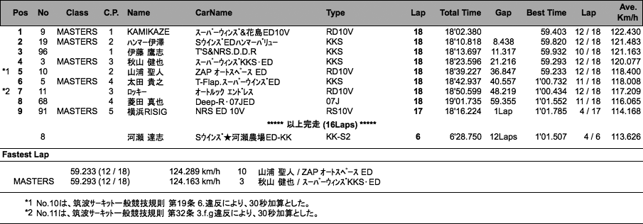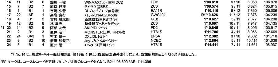 | JAF筑波サーキットトライアル選手権シリーズ第1戦 サーキットトライアル(総合結果) [▲TOP] |
