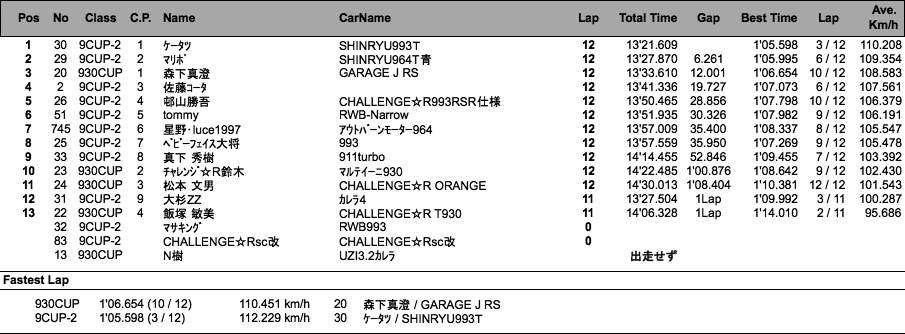 | 9-2/930(クラス別決勝) Weather :曇り Track :ドライ[▲TOP] |