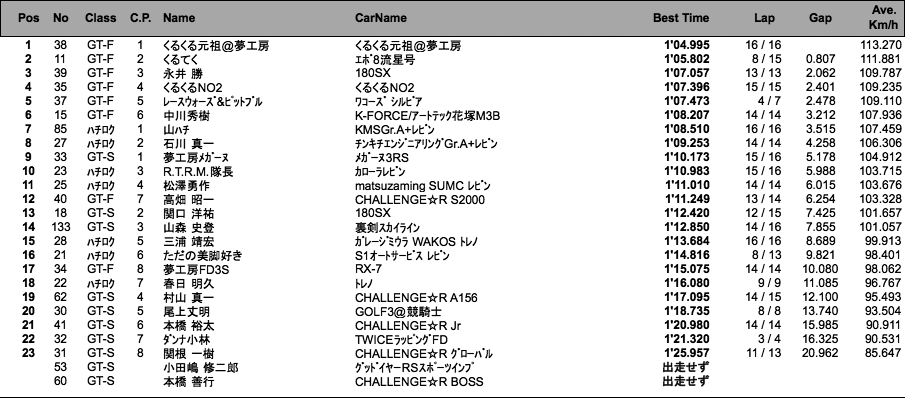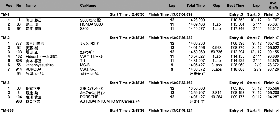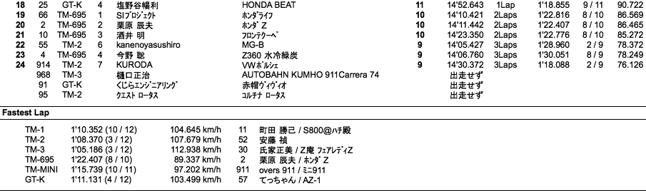 | TM&K(クラス別決勝) Weather :曇り Track :ドライ[▲TOP] |