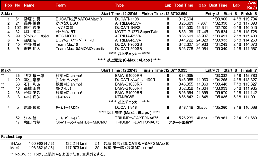 Super Max/Max4(決勝) Weather :晴れ Track :ドライ[▲TOP]