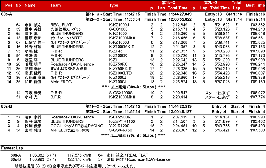 スーパーモンスター80's-A・B(予選) Weather :晴れ Track :ドライ[▲TOP]