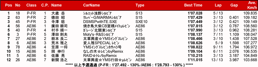 AE86/P-FR(予選)Weather :晴れ Track :ドライ[▲TOP]