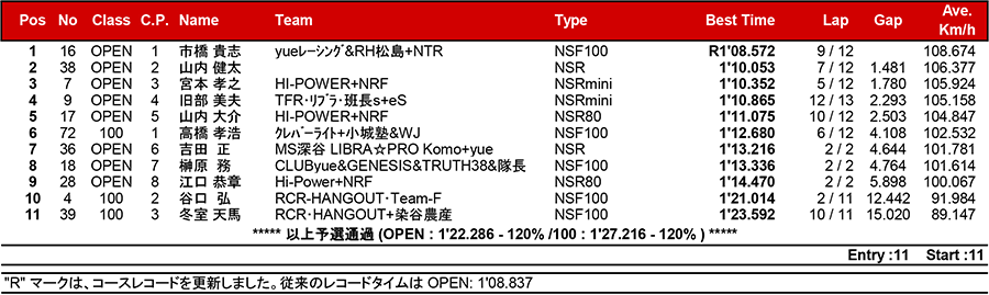 TC400/TC250(予選) Weather :曇り Track :ドライ[▲TOP]