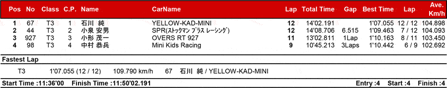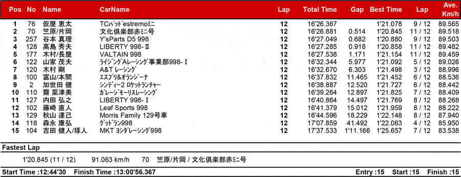 MINIスプリントチューニング1300T(決勝) Weather :晴れ Track :ドライ[▲TOP]