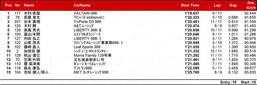 MOTUL 998 Challenge(決勝ヒート1) Weather :晴れ Track :ドライ[▲TOP]