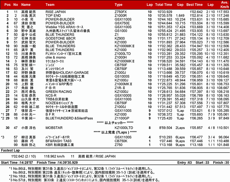 D.O.B.A.R.-2/ZERO-2(決勝)Weather :晴れ Track :ドライ[▲TOP]