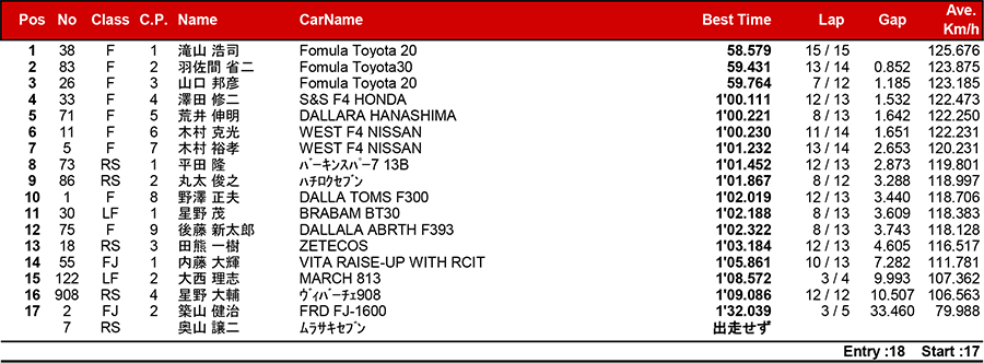 SUPER FJ(決勝)Weather :晴れ Track :ドライ[▲TOP]
