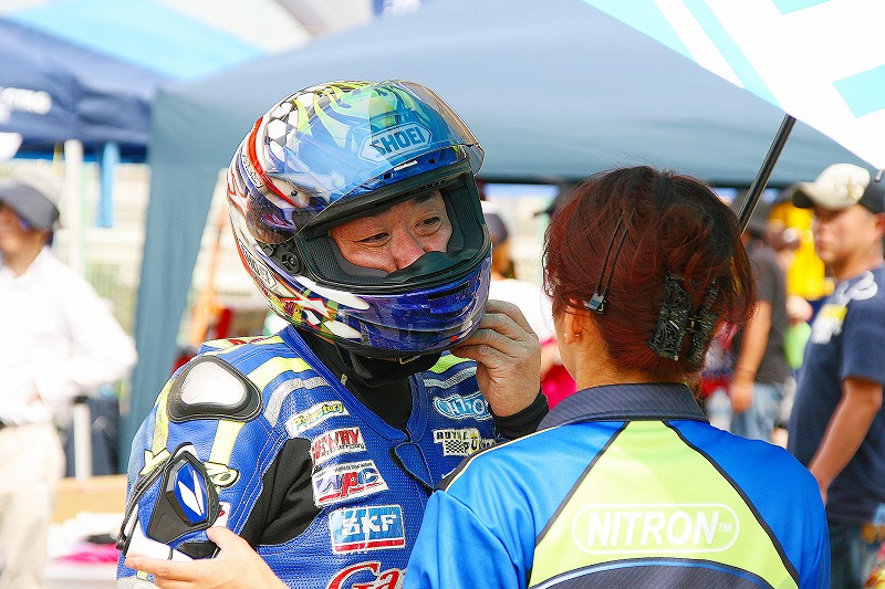 出走前に手を合わせるJP250の山澤英樹選手。悔し過ぎる結果でしたが、次回は捲土重来!