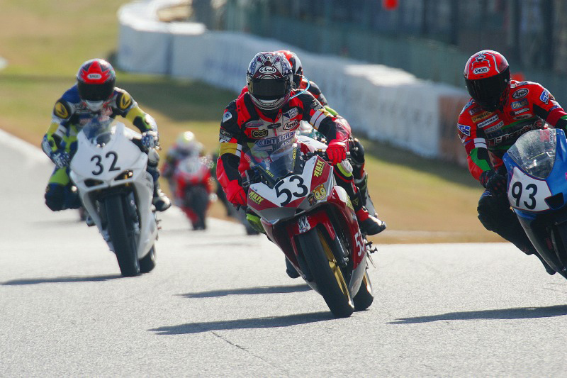 今年も暖かいお茶が恋しい時期がやってきた。という訳で「まあまあ、お茶でもすすりながら」のキャッチフレーズで始まった耐久茶屋が開店。今回は近年、2輪メーカー各社から魅力的なマシンが出揃い赤丸急上昇中の4サイクル250ccマシンで参戦する~Force One Forthの宴~。4サイクル250ccはエキスパートライダーからレースビギナーまで幅広いスキルに対応できる懐の広いマシンであり、かつタイトな筑波サーキットを全開で攻めるのにはピッタリと言える。2~3名のライダーで組んで参戦する耐久茶屋は、各ライダーのスキルやコンビネーションはもちろん、長丁場のレースをノントラブルで走り切ることのできるマシンの完成度に加え、ピット作業やレース戦略、トラブル対処などのチームワークも重要だ。今回は4クラスに合計53チームがエントリー。2組に分けられた予選のタイムにより上位41チームが2.5時間耐久のForce1に進出。42位以下の11チームは1.5時間耐久のForce2へ参戦することが決定した。