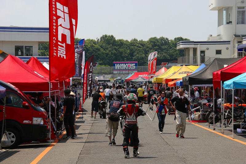 筑波TT in JULYのパドック。朝から気温がぐんぐん上昇し、猛暑の中でのレースとなりました