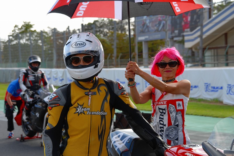 名越公一選手のグリッドにはバドガール。思わず「とりあえずビール」と言いそうになります
