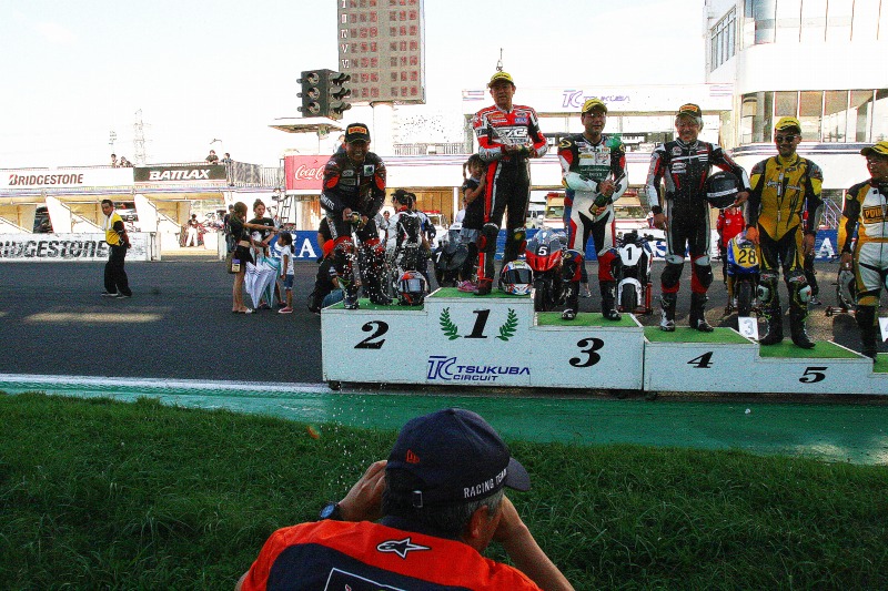 シャンパンファイトを撮影しようと油断してるとシャワーの直撃を食らうのは表彰台前のお約束
