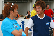 ![]() スターティンググリッドで会話中の全日本ライダー加賀山&渡辺一馬選手。次回はTT参戦? |