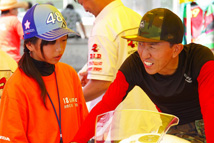![]() GSX-R カップの勝者に贈られる豪華なトロフィーを手に笑顔の相川享&御代田直実選手。これは嬉しい! |