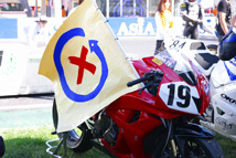 ![]() NM優勝中島孝浩選手車にドコかで見たような旗が。表彰台では例のジャンプで「ナカジマランド!」 |